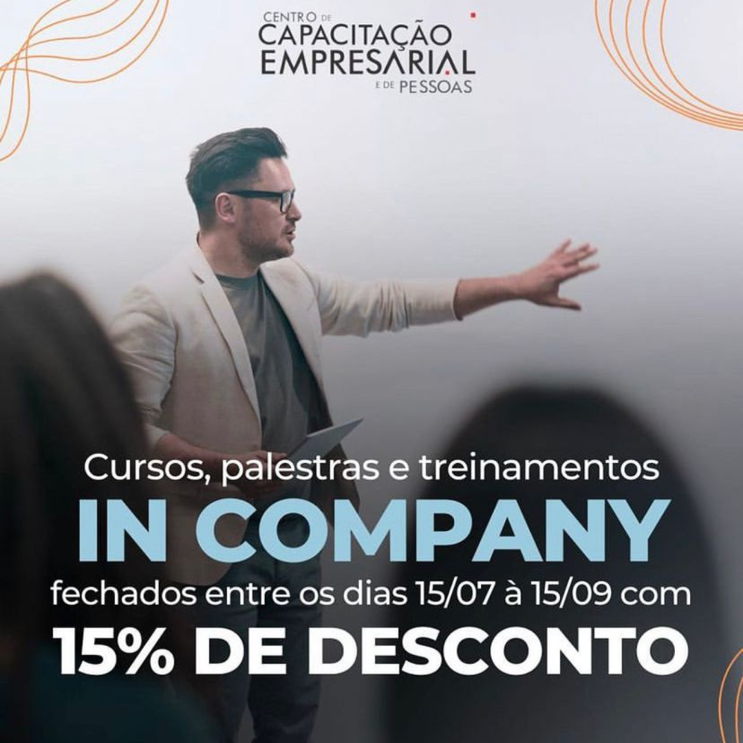 📚 Cursos, palestras e treinamentos In Company fechados entre os dias 15/07 à 15/09 terão 15% de desconto.